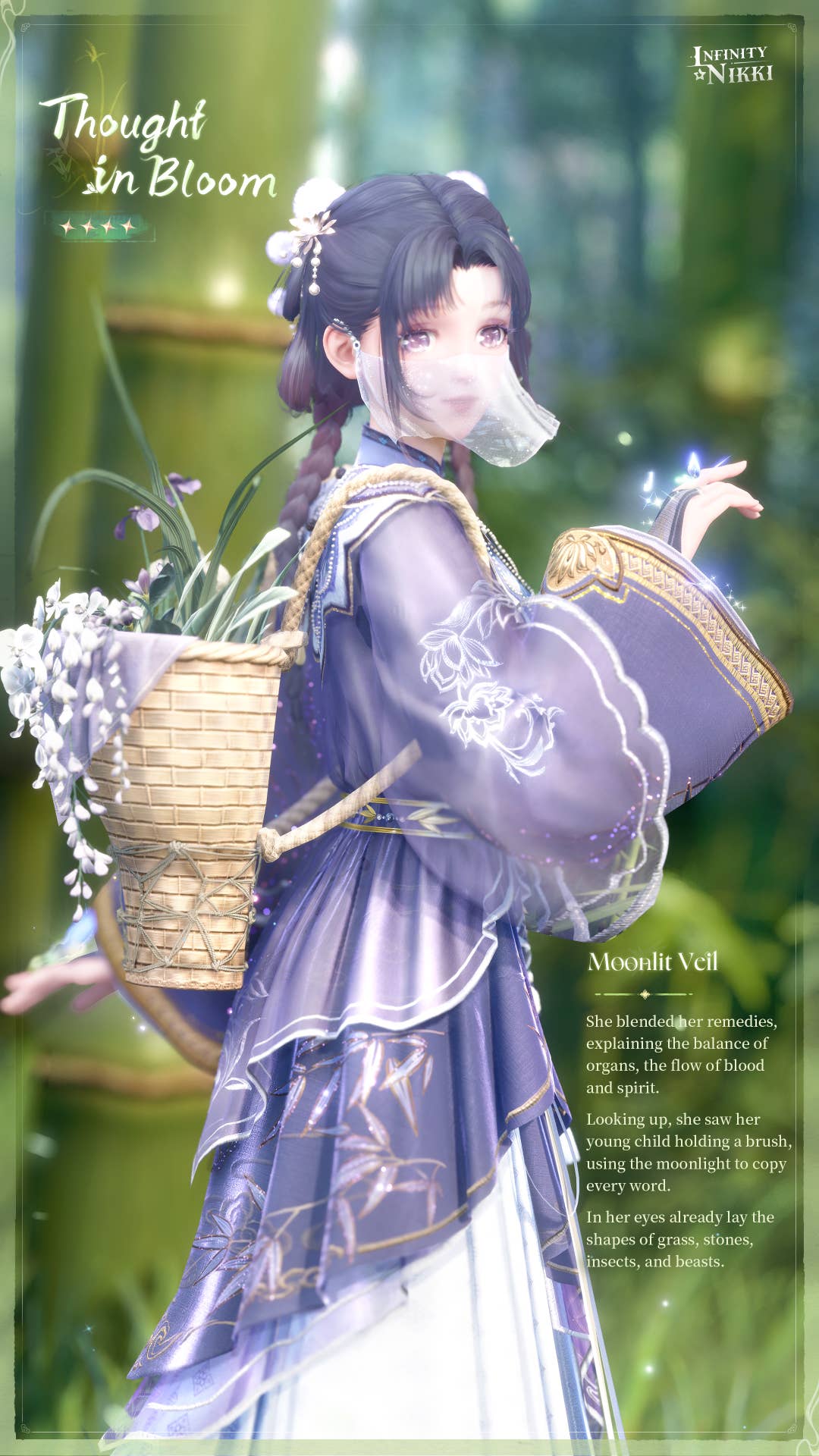 Thought in Bloom — это новый 4-звездочный элегантный костюм на баннере Palette of Destiny, представляющий собой костюм с умением ‘Дух Трав: Каприз’. Это довольно полезное умение, так как оно позволяет лечить Ники! Идеально подходит для любых сложных битв с боссами!