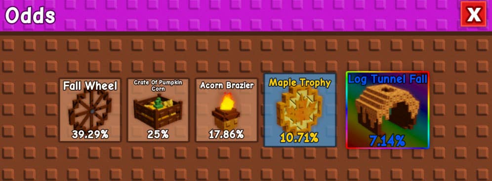 Награды в косметическом магазине Fall Cosmetic для Grow a Garden